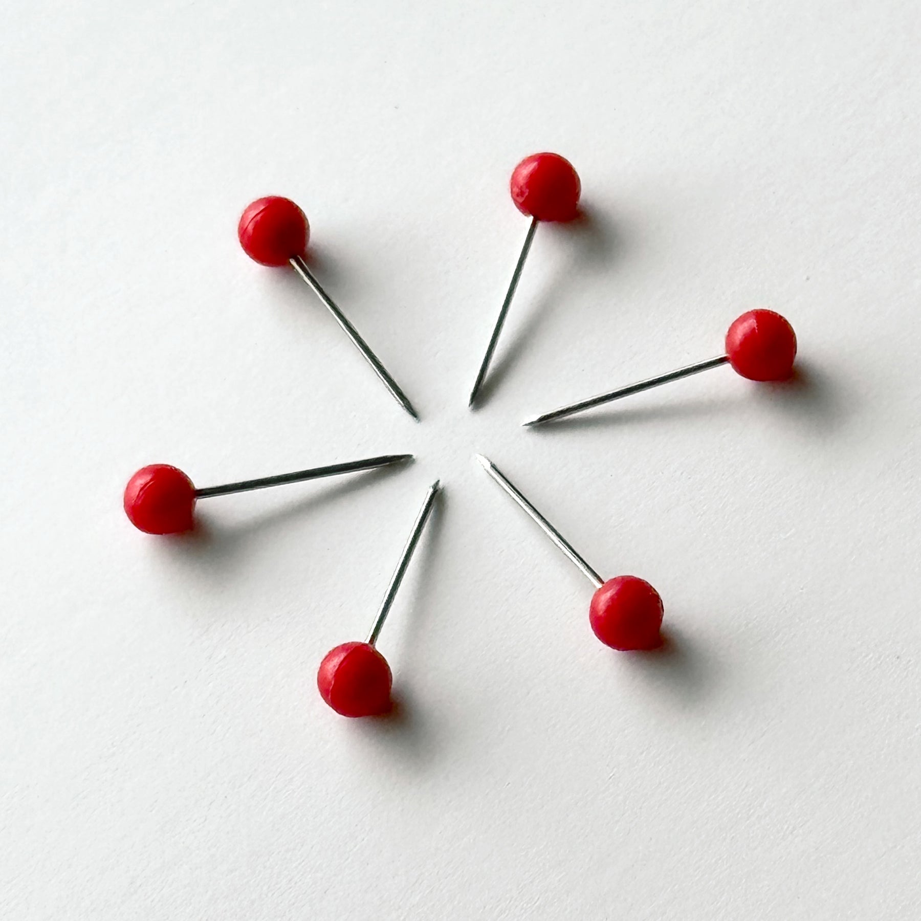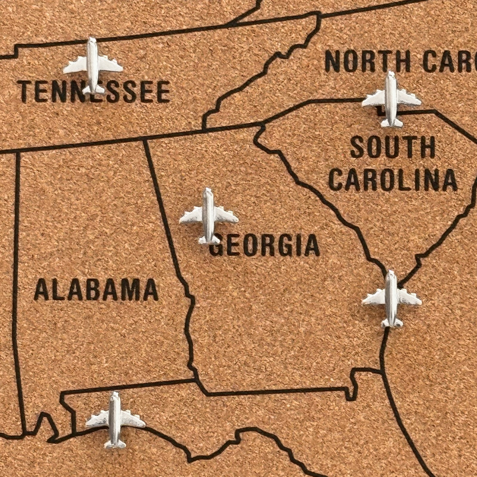 -Airplane pins (Qty 24)-Red map pins with star in middle (Qty 40)-Small multi-colored ball pins (Qty 250)-Small red ball pins (Qty 250)Modern CorkBoard Map sold separately, see here