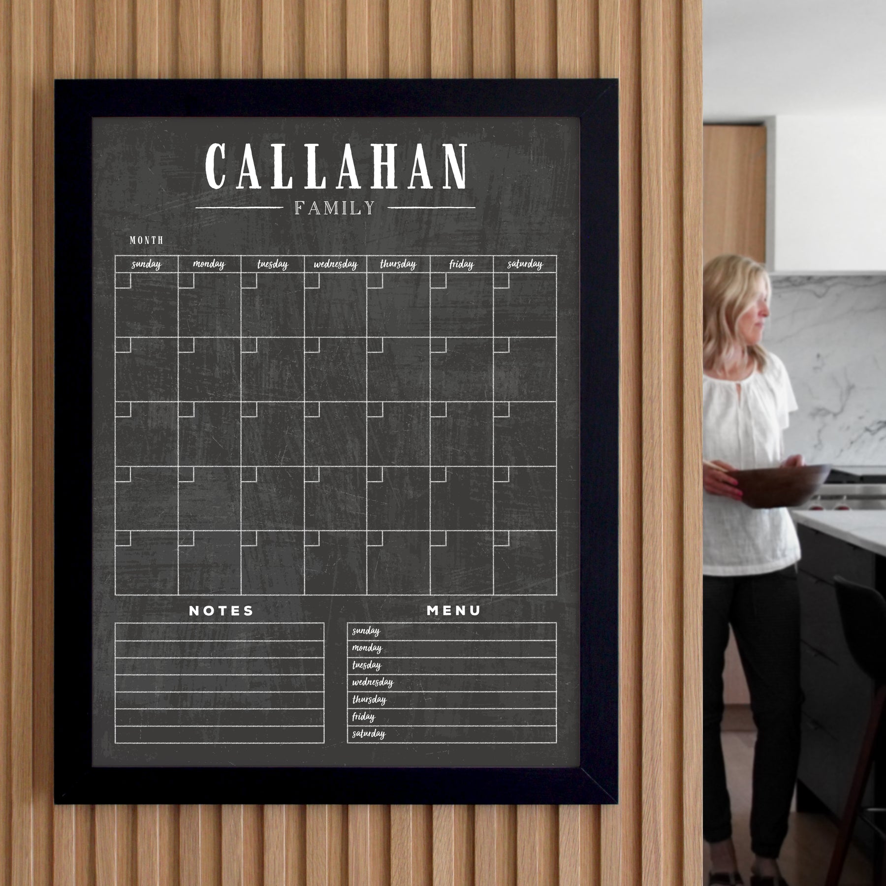 This beautiful framed chalkboard calendar is professionally designed, and is made to be used with chalk ink markers. It is not an actual chalkboard, but made to look like one. The surface is an amazing premium, non-glare acrylic. To erase, you simply wet a paper towel, wipe off ink, and dry with a dry paper towel. The ink erases completely, with no residue.