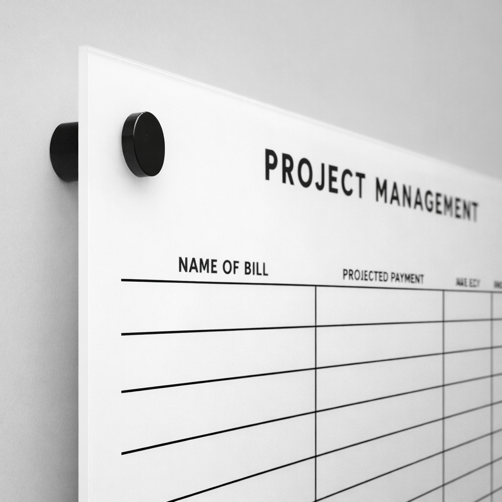 White Acrylic Project Management Dry Erase Board